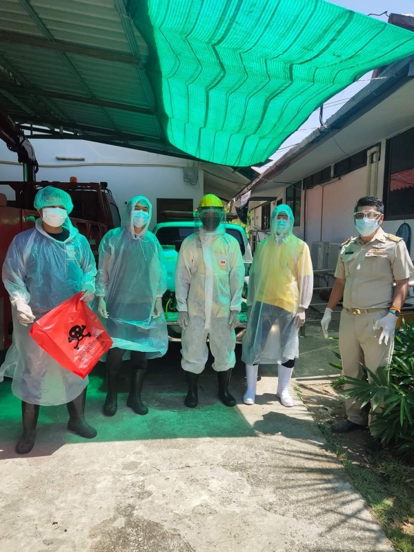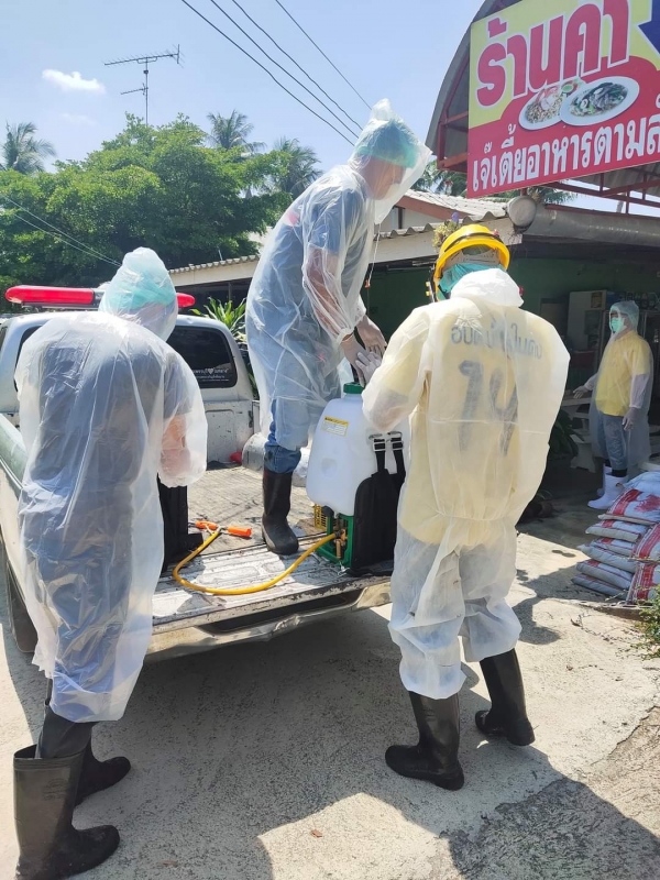 ลงพื้นที่ฉีดน้ำยาฆ่าเชื้อเพื่อป้องกันโรคติดต่อไวรัสโควิด 19 จุดสี่ยงในตำบลบ้านในดง
