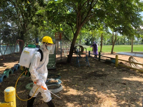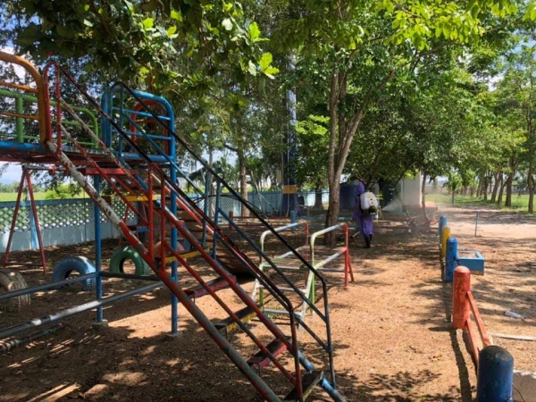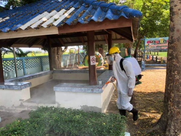 ลงพื้นที่ฉีดน้ำยาฆ่าเชื้อโรงเรียนบ้านในดง เพื่อป้องกันโรคติดต่อไวรัสโควิด
