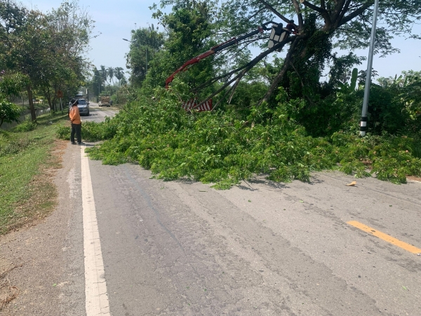 โปรดชะลอความเร็ว และใช้เส้นทางด้วยความระมัดระวัง เนื่องจากมีการตัดต้นไม้