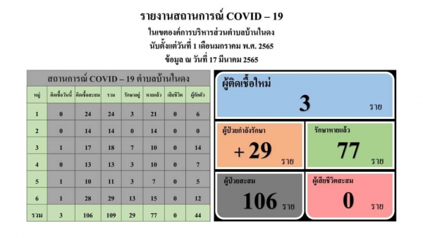 สถานการณ์โควิด-19 วันที่ 17 มีนาคม 2565