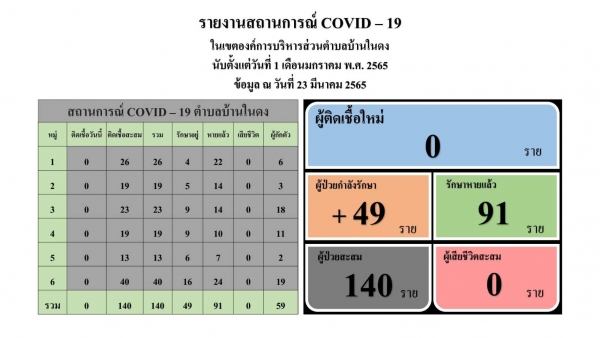 สถานการณ์โควิด-19 วันที่ 23 มีนาคม 2565