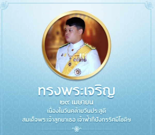 ๒๙ เมษายน วันคล้ายวันประสูติสมเด็จพระเจ้าลูกยาเธอ เจ้าฟ้าทีปังกรรัศมีโชติ มหาวชิโรตตมางกูร สิริวิบูลยราชกุมาร ทรงพระเจริญ ข้าพระพุทธเจ้า ผู้บริหาร ทีมบริหาร พนักงานและลูกจ้าง องค์การบริหารส่วนตำบลบ้านในดง อำเภอท่ายาง จังหวัดเพชรบุรี