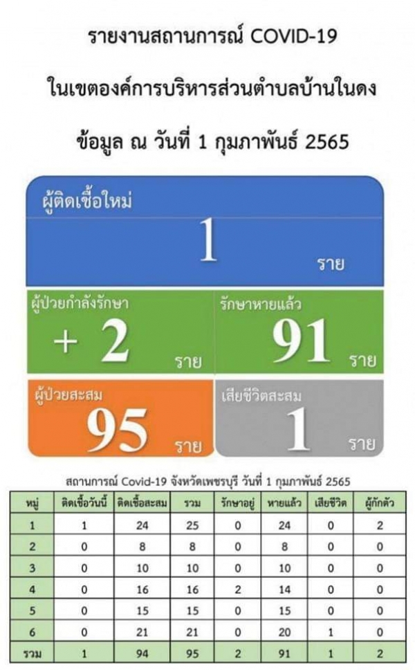 สถานการณ์โควิด-19 วันที่ 1 กุมภาพันธ์ 2565
