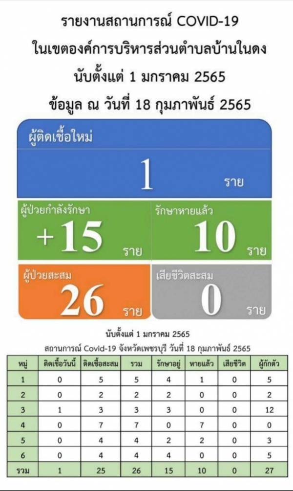 สถานการณ์โควิด-19 วันที่ 18 กุมภาพันธ์ 2565