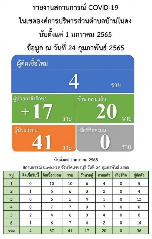 สถานการณ์โควิด-19 วันที่ 24 กุมภาพันธ์ 2565