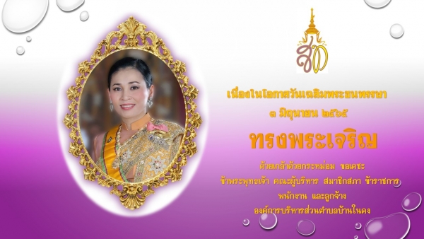 ๓ มิถุนายน ๒๕๖๕ เนื่องในโอกาสวันเฉลิมพระชนมพรรษาสมเด็จพระนางเจ้าสุทิดา พัชรสุธาพิมลลักษณ พระบรมราชินี